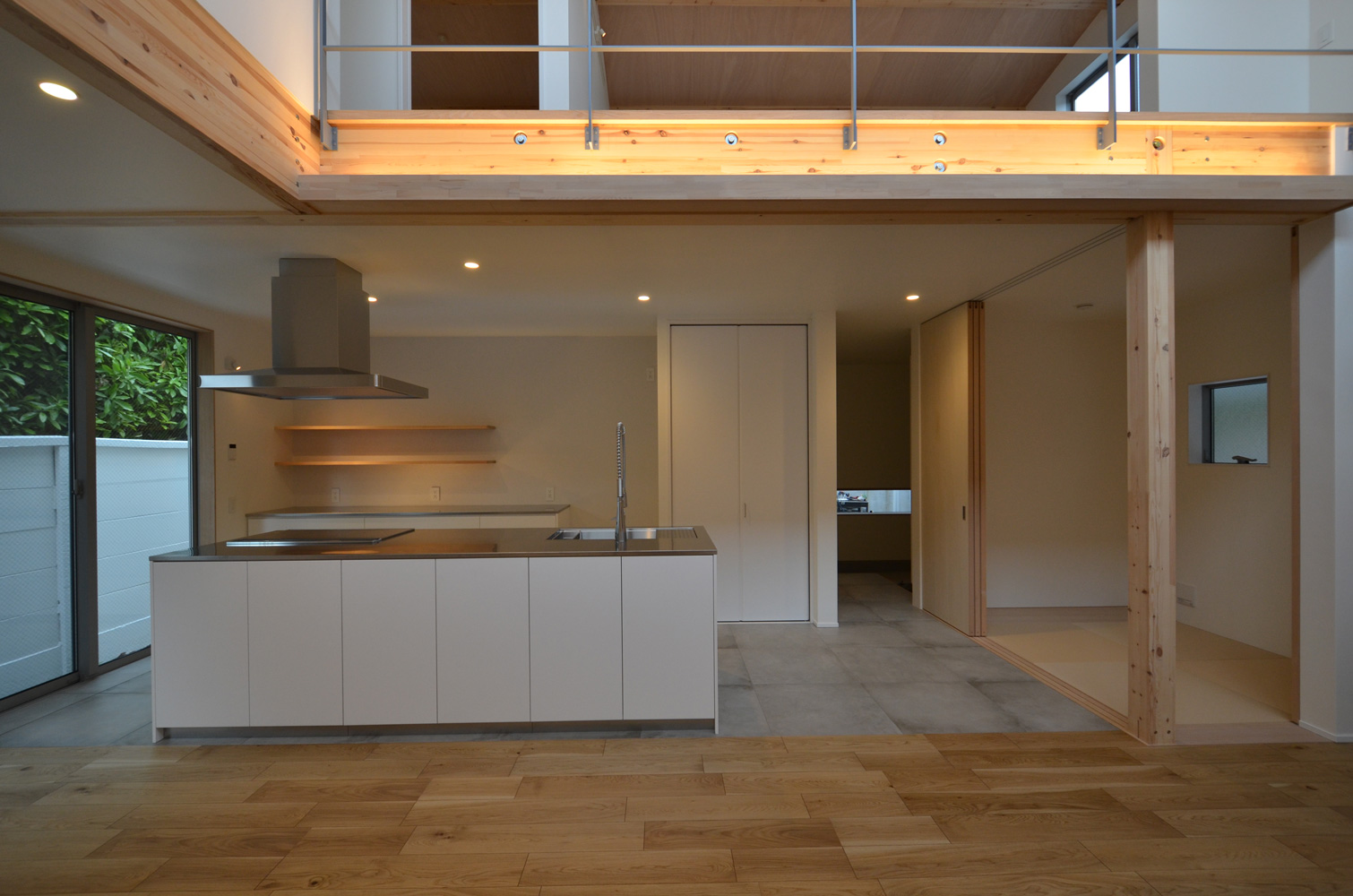 大きくはありませんがLDKの一部にはタタミコーナーもあります。リビング、キッチン、和室と、床材を変えることで領域をゆるやかに分けています。和室自体はシンプルな作りなのでLDKの中で違和感なく馴染みますが、日本人にはやはり嬉しい空間です。